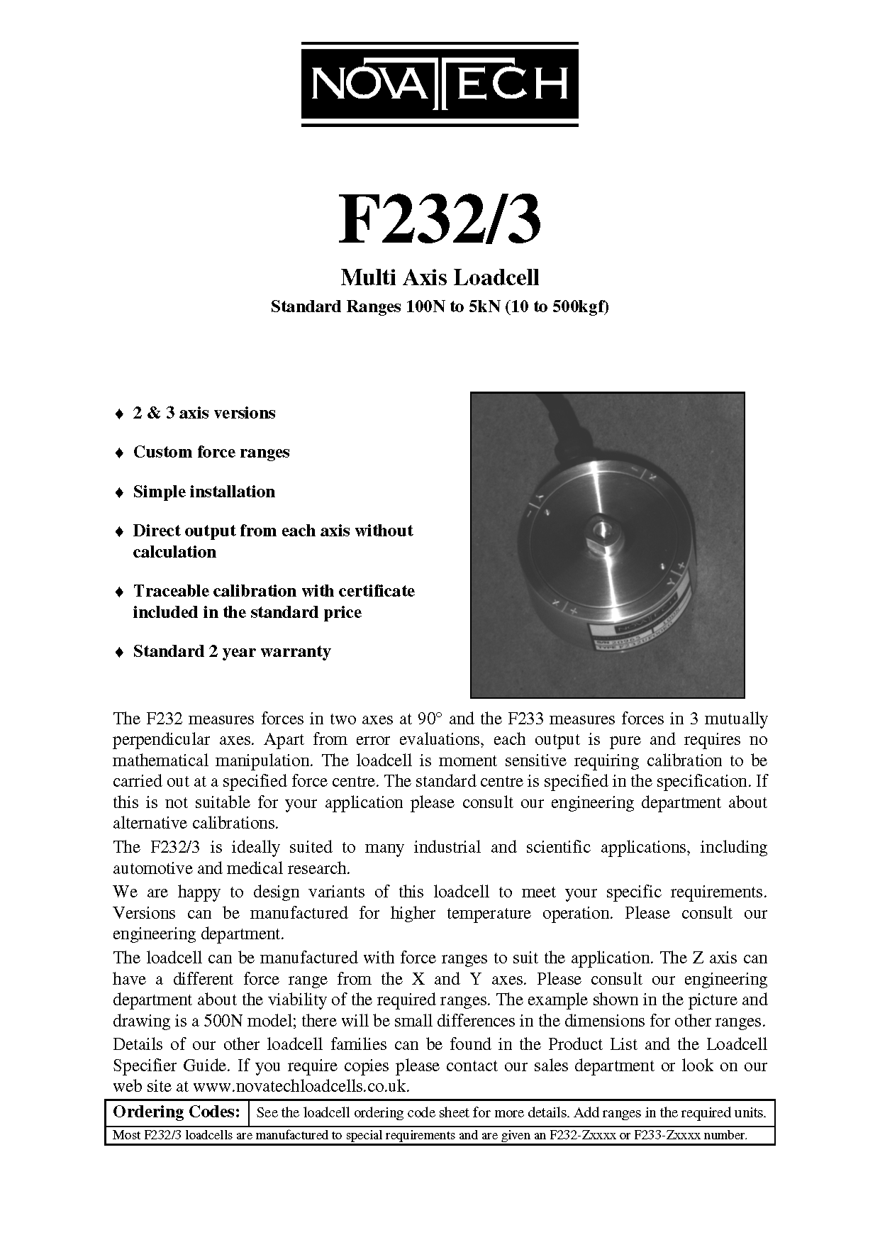 美國(guó)NOVATECH F232/3多分力傳感器