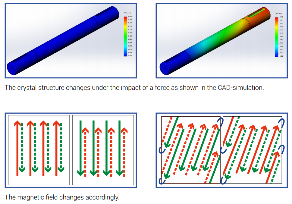 當(dāng)外部的力,剪切,扭矩,作用在具有磁性編碼的軸上時(shí),我們可以直接地、穩(wěn)定地、長(zhǎng)時(shí)間地觀察和測(cè)量軸上磁場(chǎng)的變化,即使在困難的外部條件下,也能非常準(zhǔn)確和重現(xiàn)性地觀察和測(cè)量它。