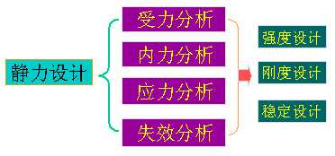 其中的靜力設(shè)計是很重要的,包括受力分析、內(nèi)力分析、應(yīng)力分析和失效分析。最后有強(qiáng)度設(shè)計、剛度設(shè)計和穩(wěn)定設(shè)計。所以可以看出,靜力設(shè)計在工程設(shè)計中有很重要的地位。