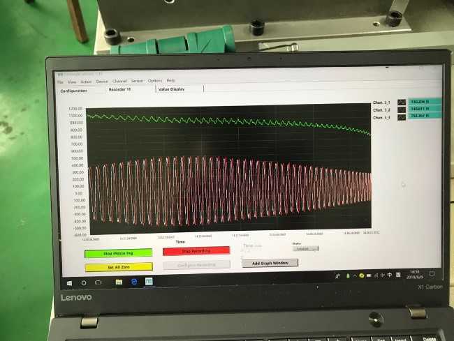 傳感器被安裝在加熱爐底部的固支平臺(tái)上,作為測試部件串聯(lián)在結(jié)構(gòu)中,平臺(tái)下方是三軸聯(lián)動(dòng)機(jī)床,測試過程中,我們對傳感器的受熱溫度進(jìn)行監(jiān)測,發(fā)現(xiàn)傳感器上方安裝板的溫度在40℃左右,這個(gè)溫度并不影響傳感器的使用;