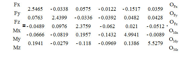 OFx = K1·Fx + K2·Fy + K3·Fz + K4·Mx + K5·My + K6·Mz