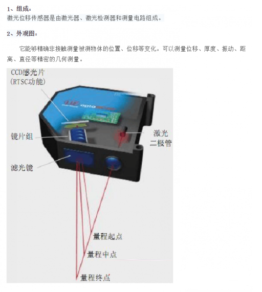 激光位移傳感器常用于長度、距離、振動、速度、方位等物理量的測量,還可用于探傷和大氣污染物的監(jiān)測等 。